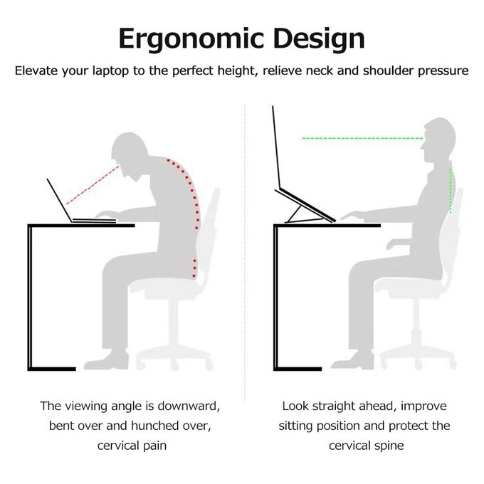 - More comfortable: With height adjustment, lift the viewing angle to a horizontal level, to reduce the fatigue caused by long-time working and protect your cervical spine, more healthy and comfortable way.